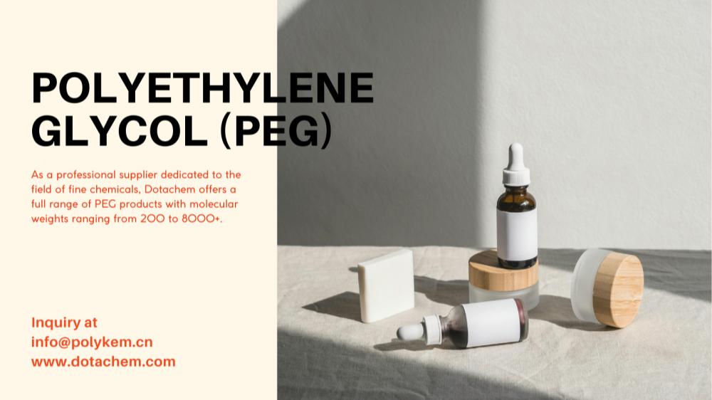 Ammattimaisena hienokemikaalien toimittajana Dotachem tarjoaa täyden valikoiman PEG-tuotteita, joiden molekyylipainot vaihtelevat välillä 200 - 8000+.